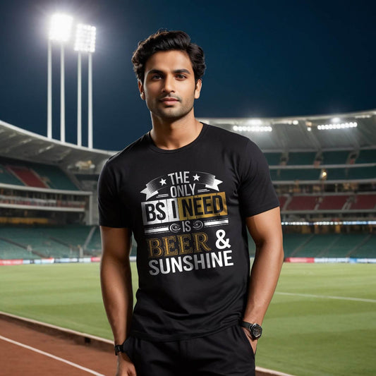 THE ONLY BS I NEED IS BEER & SUNSHINE - Unisex Round Neck Regular Fit 100% Combed Cotton Half Sleeve T-Shirt