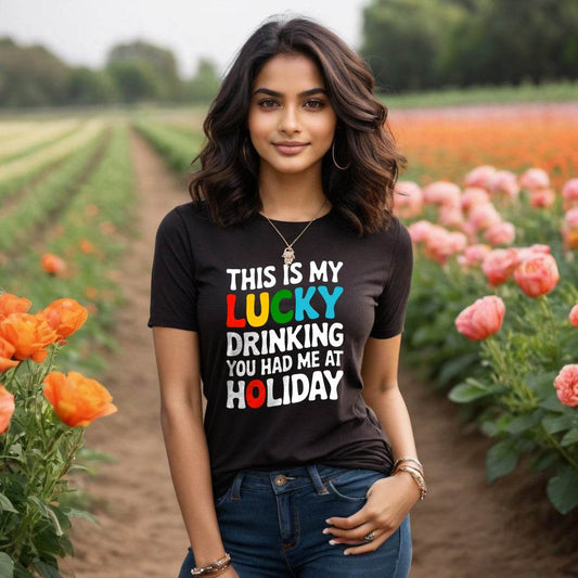THIS IS MY LUCKY DRINKING YOU HAD ME AT HOLIDAY - Unisex Round Neck Regular Fit 100% Combed Cotton Half Sleeve T-Shirt