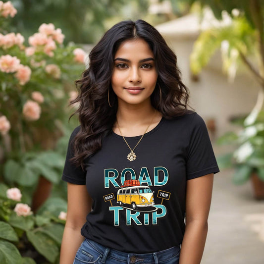 ROAD TRIP - Unisex Round Neck Regular Fit 100% Combed Cotton Half Sleeve T-Shirt