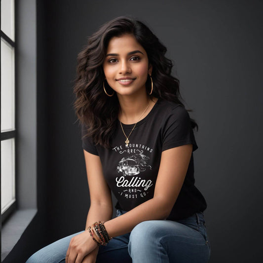 THE MOUNTAINS ARE Calling AND MUST GO - Unisex Round Neck Regular Fit 100% Combed Cotton Half Sleeve T-Shirt