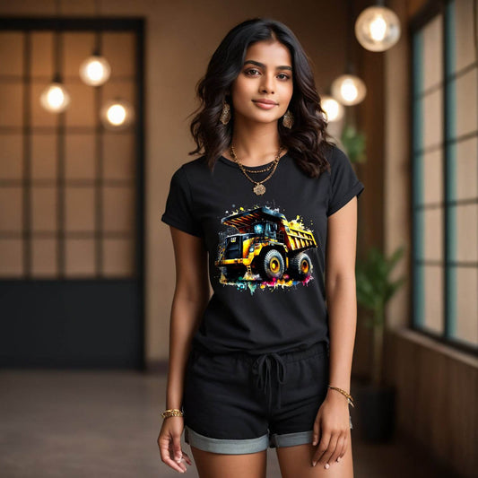Mining Truck illustration in colorful - Unisex Round Neck Regular Fit 100% Combed Cotton Half Sleeve T-Shirt