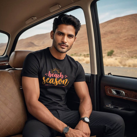 Beach Season Typography - Unisex Round Neck Regular Fit 100% Combed Cotton Half Sleeve T-Shirt