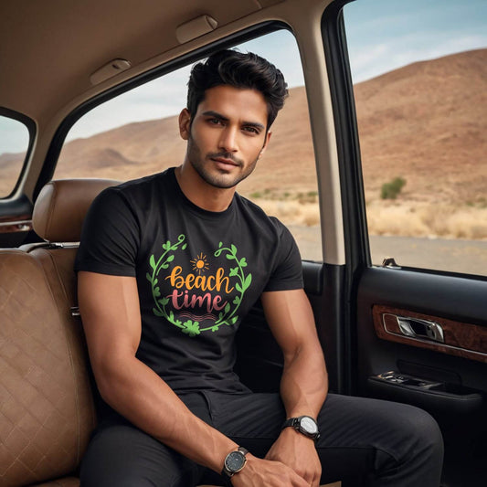 Beach Time - Unisex Round Neck Regular Fit 100% Combed Cotton Half Sleeve T-Shirt