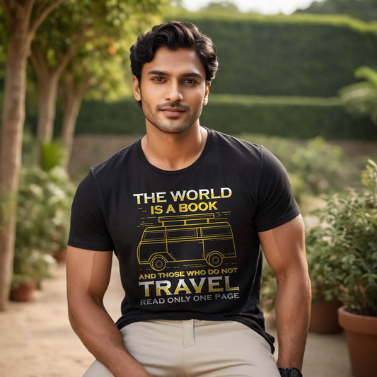 The world Is A book And those who do not travel read only one page - Unisex Round Neck Regular Fit 100% Combed Cotton Half Sleeve T-Shirt