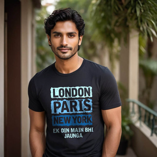 LONDON PARIS NEW YORK EK DIN MAIN BHI JAUNGA - Unisex Round Neck Regular Fit 100% Combed Cotton Half Sleeve T-Shirt