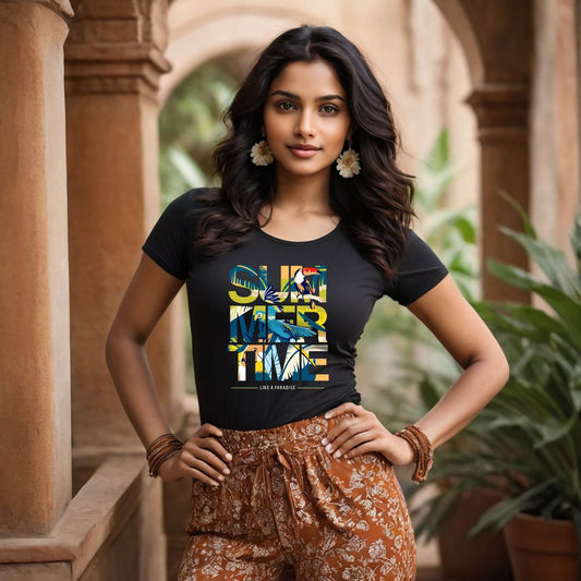 Summer Time Like A Paradise - Unisex Round Neck Regular Fit 100% Combed Cotton Half Sleeve T-Shirt