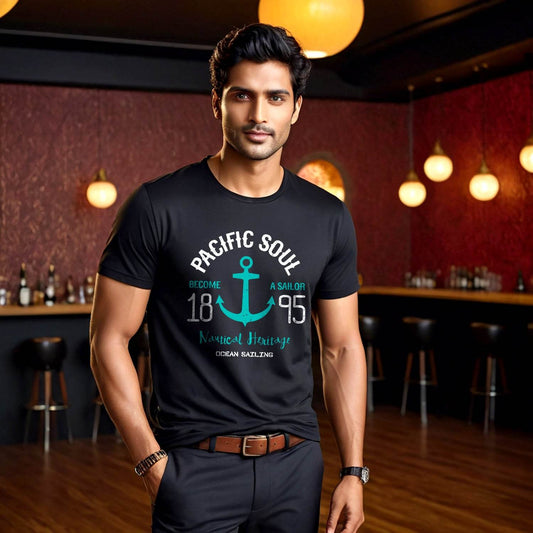 PACIFIC SOUL BECOME A SAILOR 1895 Nautical Heritage OCEAN SAILING - Unisex Round Neck Regular Fit 100% Combed Cotton Half Sleeve T-Shirt