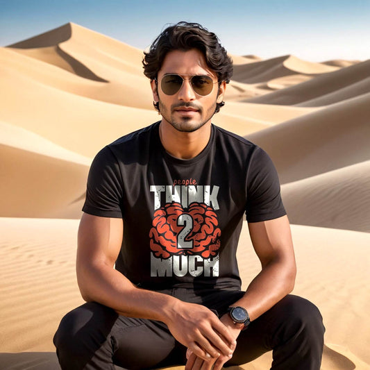 People THINK 2 MUCH - Unisex Round Neck Regular Fit 100% Combed Cotton Half Sleeve T-Shirt