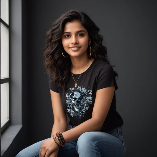 Floral Skull Clip art antique illustrations of human skulls and flowers - Unisex Round Neck Regular Fit 100% Combed Cotton Half Sleeve T-Shirt