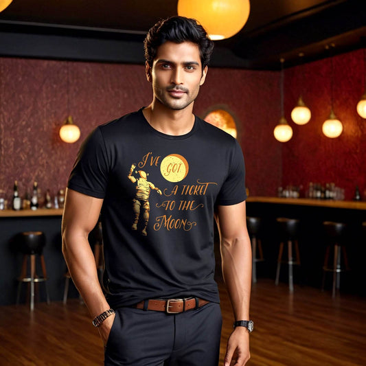 I'VE GOT A TICKET TO THE MOON - Unisex Round Neck Regular Fit 100% Combed Cotton Half Sleeve T-Shirt