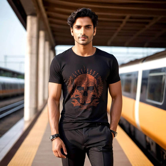 LIVE FAST RIDE FREE SKULL - Unisex Round Neck Regular Fit 100% Combed Cotton Half Sleeve T-Shirt