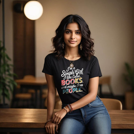 I'm a Simple Girl I like Cofee, BOOKS and maybe three PEOPLE - Unisex Round Neck Regular Fit 100% Combed Cotton Half Sleeve T-Shirt