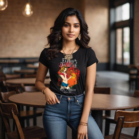 FARMER'S DAUGHTER REAL AMERICAN HARD GIRL - Unisex Round Neck Regular Fit 100% Combed Cotton Half Sleeve T-Shirt