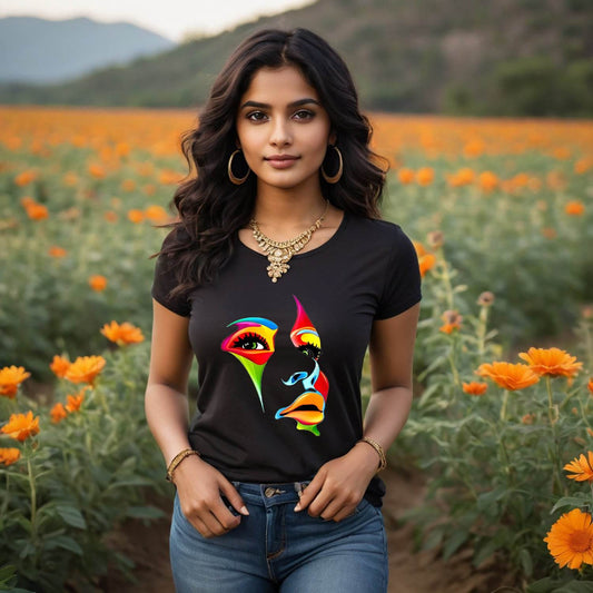 Colorful Woman Face - Unisex Round Neck Regular Fit 100% Combed Cotton Half Sleeve T-Shirt