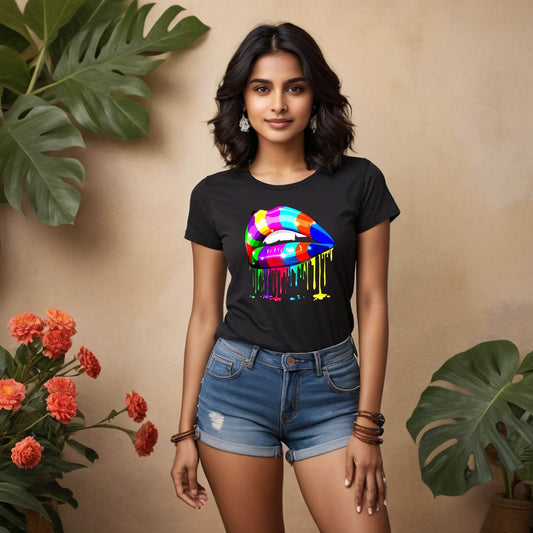 Sensual Lips Psychedelic - Unisex Round Neck Regular Fit 100% Combed Cotton Half Sleeve T-Shirt