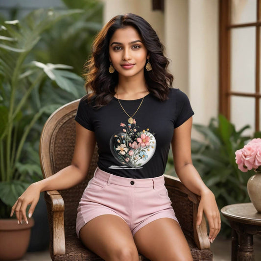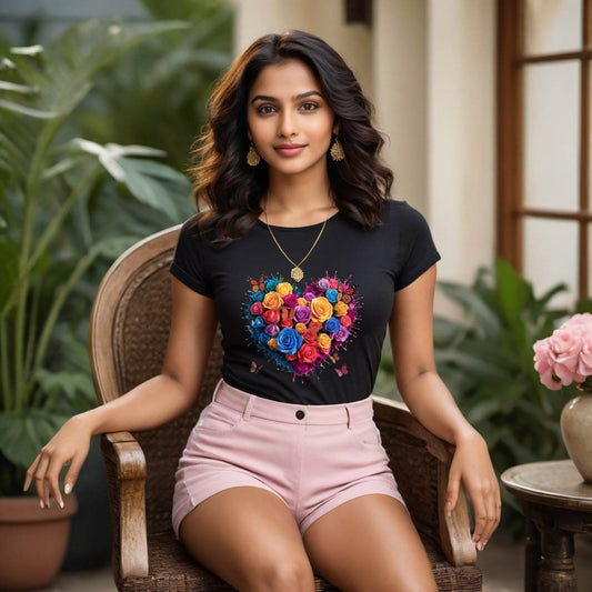 Heart Full of Flowers - Unisex Round Neck Regular Fit 100% Combed Cotton Half Sleeve T-Shirt