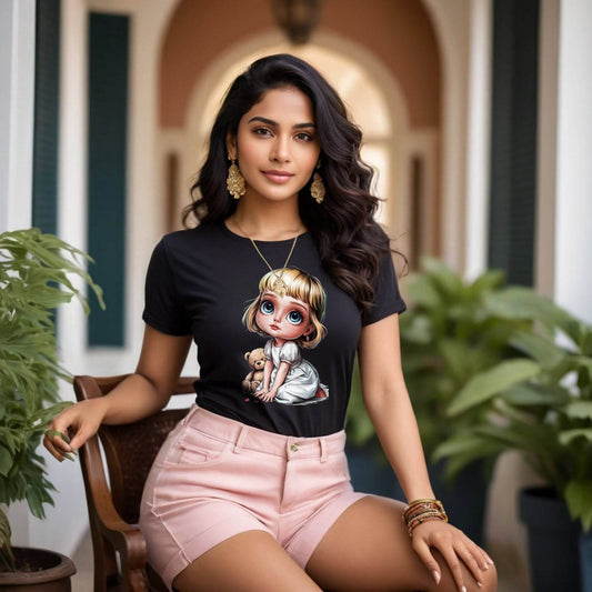 Colorful Girl Desing - Unisex Round Neck Regular Fit 100% Combed Cotton Half Sleeve T-Shirt