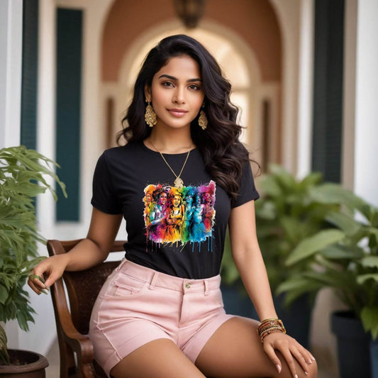 Colorful Beautiful Woman - Unisex Round Neck Regular Fit 100% Combed Cotton Half Sleeve T-Shirt