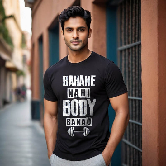 BAHANE NAHI BODY BANAO - Unisex Round Neck Regular Fit 100% Combed Cotton Half Sleeve T-Shirt