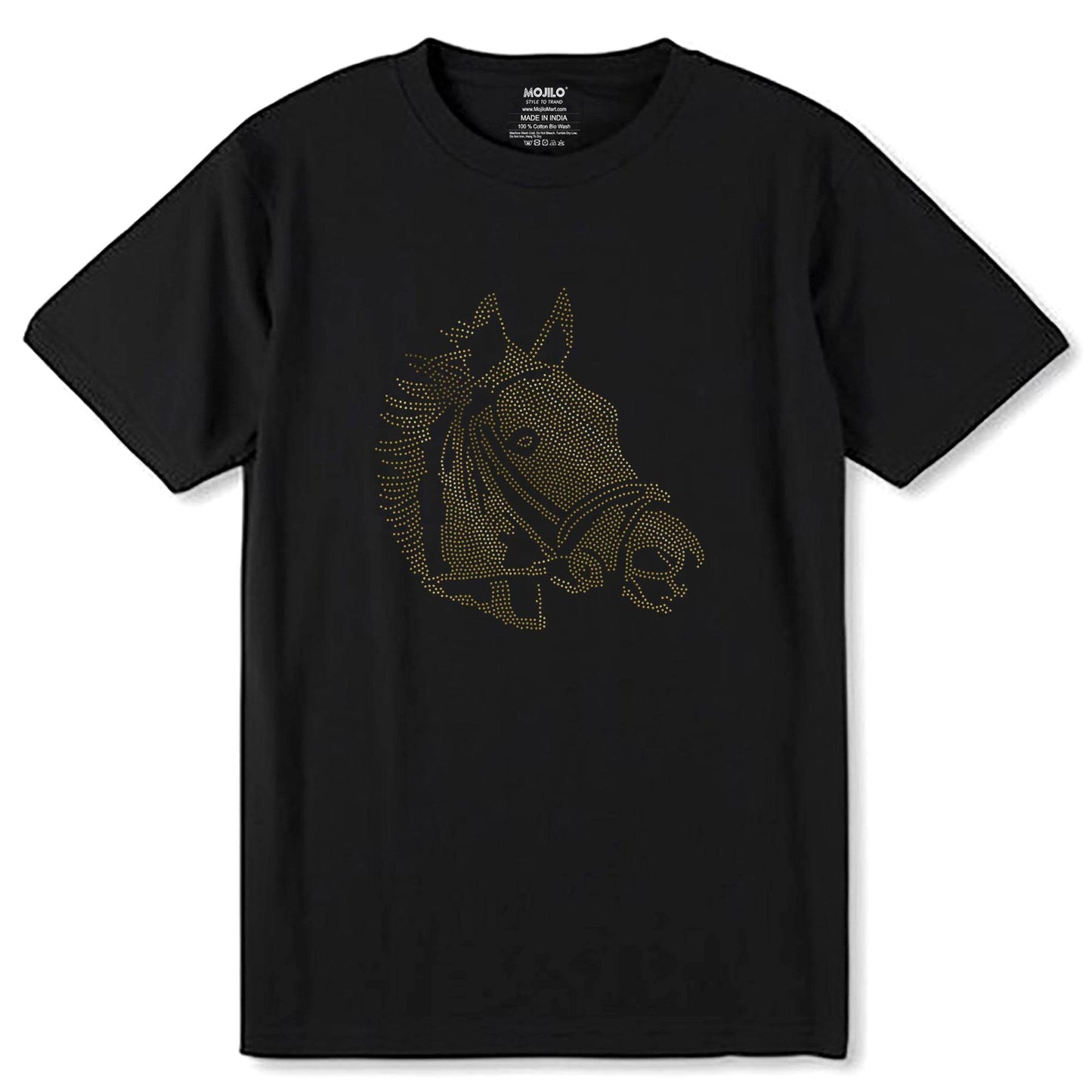 GOLD SPANGLE HORSE - Unisex Round Neck Regular Fit 100% Combed Cotton Half Sleeve T-Shirt
