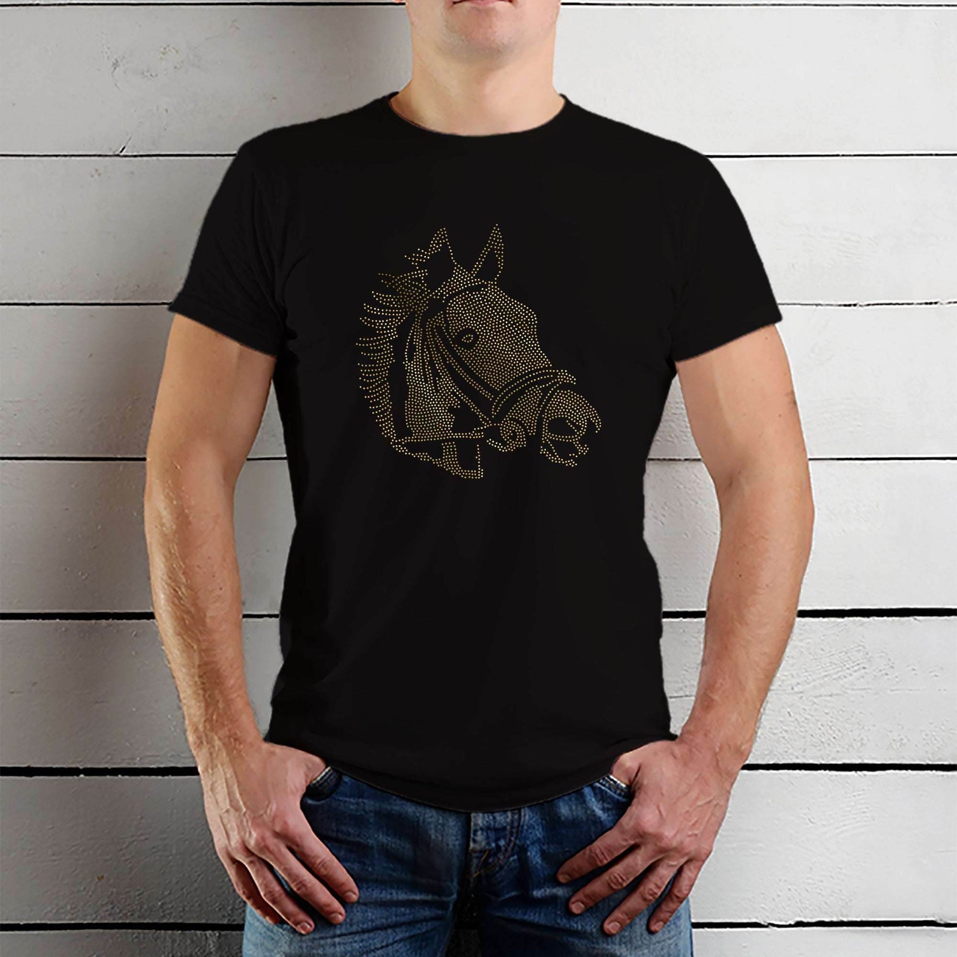 The GOLD SPANGLE HORSE is not just another T-shirt; it's a bold expression of individuality and style. Designed with care and precision, this T-shirt stands out for its unique combination of creativity and comfort. Whether you're heading out for a casual day or a special event, the GOLD SPANGLE HORSE is the perfect choice for making a statement.
